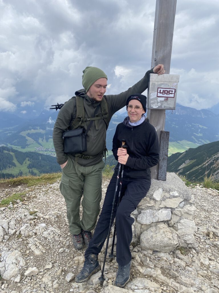So erreichen wir das Gipfelkreuz, in dessen Buch dann auch amtlich ein Eintrag gemacht wird und das Gipfelfoto darf natürlich auch nicht fehlen.