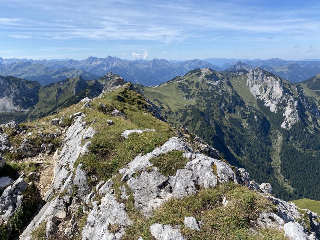 Bei diesem Wetter muss man auf einen Gipfel! Und wenn wir von Aussichtsgipfeln sprechen, dann wird die Große Schlicke häufig genannt. Vom Gipfel kann man weit… weit… weit… sehen, das ganze Tannheimer Tal sowieso, aber auch raus ins Algäuer Voralpenland. Und das ist heute der Plan.